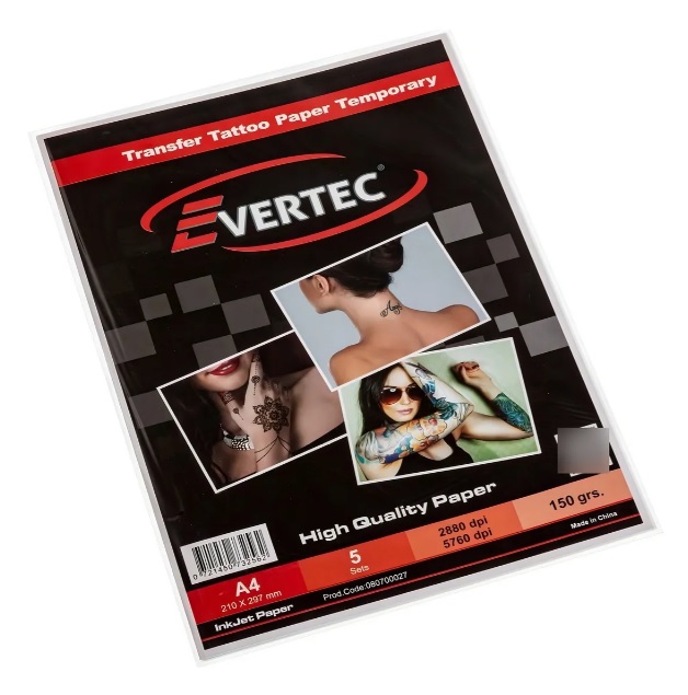 El Evertec Papel Transfer Tatuajes Temporales A4 es ideal para crear tus propios diseños de tatuajes temporales. Este paquete incluye 5 hojas de papel transfer de alta calidad, con un gramaje de 150 gramos, perfecto para obtener resultados nítidos y detallados. Diseñado específicamente para impresoras de inyección de tinta (Inkjet), este papel es fácil de usar y te permite personalizar tus tatuajes de manera rápida y sencilla. Aunque no es hipoalergénico ni a prueba de agua, es una excelente opción para eventos especiales o para probar nuevos diseños antes de comprometerte con un tatuaje permanente. El modelo 080700027 garantiza la calidad y confiabilidad de la marca Evertec. Ideal para aquellos que buscan una solución temporal y creativa para sus tatuajes.