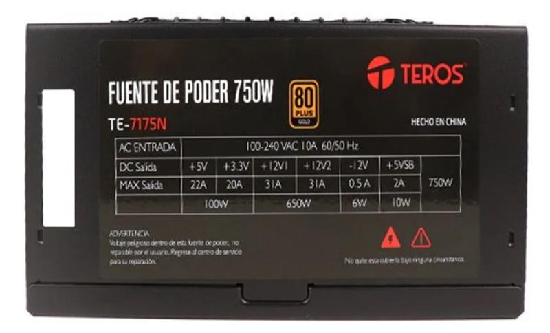 FUENTE - TEROS - TE-7175 750W 80 PLUS GOLD ATX