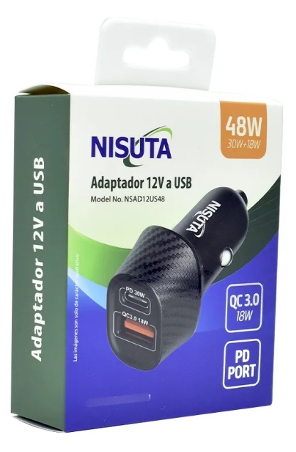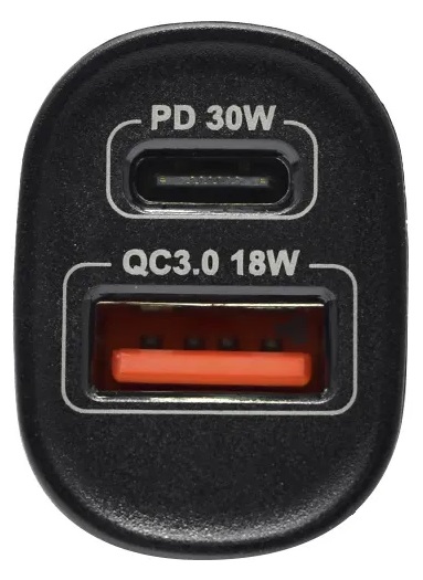 - Salidas simultáneas USB-A (18W) + USB-C (30W) = 48W total